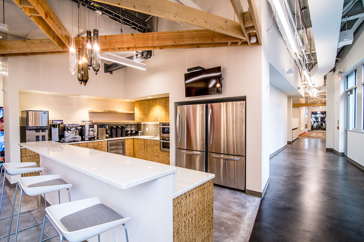 Autodesk, along with their Owners Representative, Jones Lang LaSalle, selected A. Martini & Co.’s team to build their 14,000sf space at Bakery Square 2.0. The goal and theme of the space was to build a fun atmosphere while incorporating the feel of Pittsburgh – metal, wood, as well as unique prints to reflect the famous artists from the area, and large pieces of artwork of landmarks around the Pittsburgh region. Working with NEXT architecture, our team achieved this goals by focusing on the unique craftsmanship of the space and the intricate touches in each area of the office. The office’s location in the new 2.0 building offers a ton of natural light, which really helps to highlight the industrial finishes and bold colors in the space.