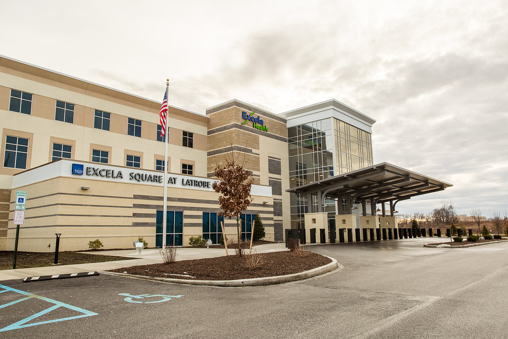 Excela Square at Latrobe serves as an extension of Excela Latrobe Hospital by consolidating other services that were previously available at 16 separate sites. The building is supplemented by 350 parking spaces.