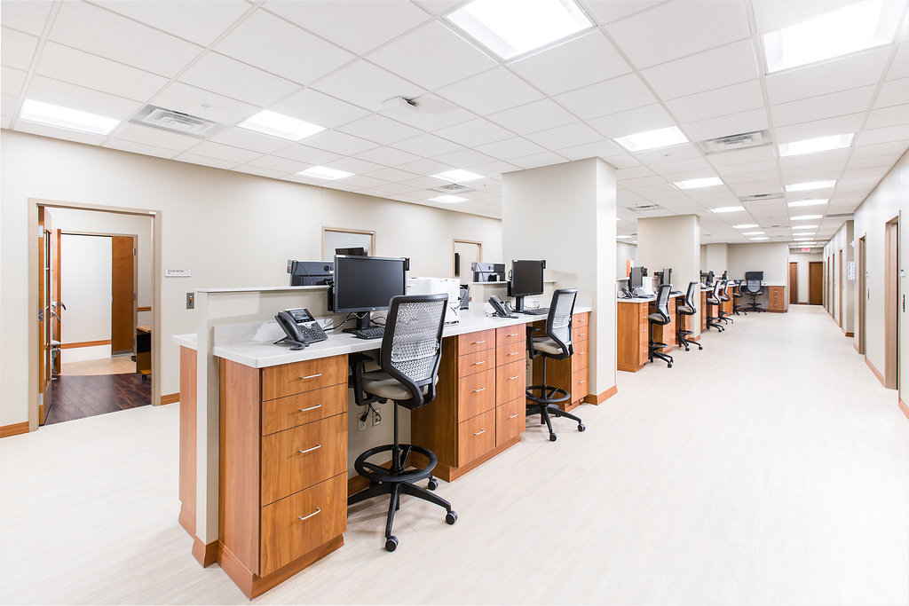 The first-floor features Outpatient therapy services; Diagnostic Services such as lab and blood draw, diagnostic radiology, mammography, CT Scan, Ultrasound, Bone Density testing, and pre-op testing + EKG; Ear, Nose and Throat practice; Advanced Pain Center; as well as the main lobby, children’s area, and doctors/staff offices.