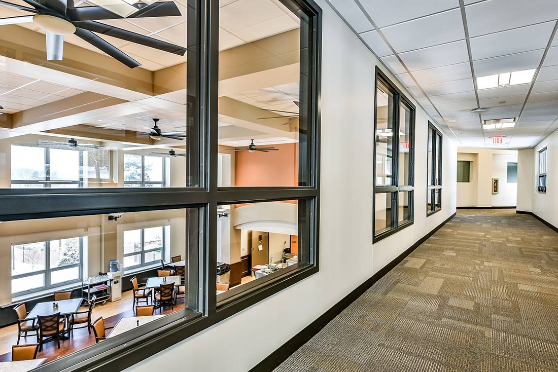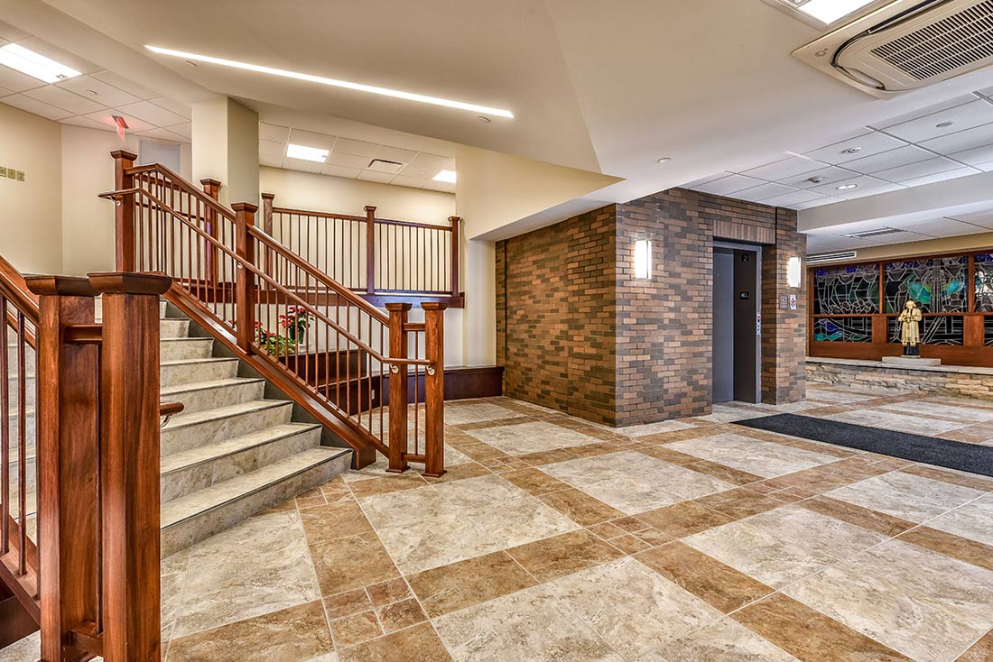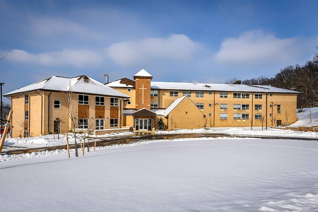 A. Martini & Co. served as the General Contractor for St. John Vianney Manor retirement home on the campus of St. Paul Seminary in Crafton. This is the first renovation/expansion to the facility, since the third floor was added over 37 years ago. Construction included four residential suites, for a total of 35 in the home. A new, two story structure, connecting the existing building, which now houses the dining room, kitchen, two lounges, an exercise facility and nurse’s office. Suites were refurbished with walk-in showers, new windows, flooring and paint. The temperature of every suite can be controlled individually, thanks to an updated HVAC system. Additionally a new elevator was added to the facility.