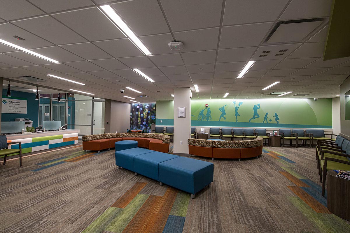 A. Martini & Co. recently delivered a 17,000sf POI in Wexford for Allegheny Health Network. This facility is the integration of multiple key areas of treatment for young patients, bringing together four centers of excellence: a sports and injury center, a concussion and regenerative sports medicine center, a spine and musculoskeletal center, and a pediatric therapy center.