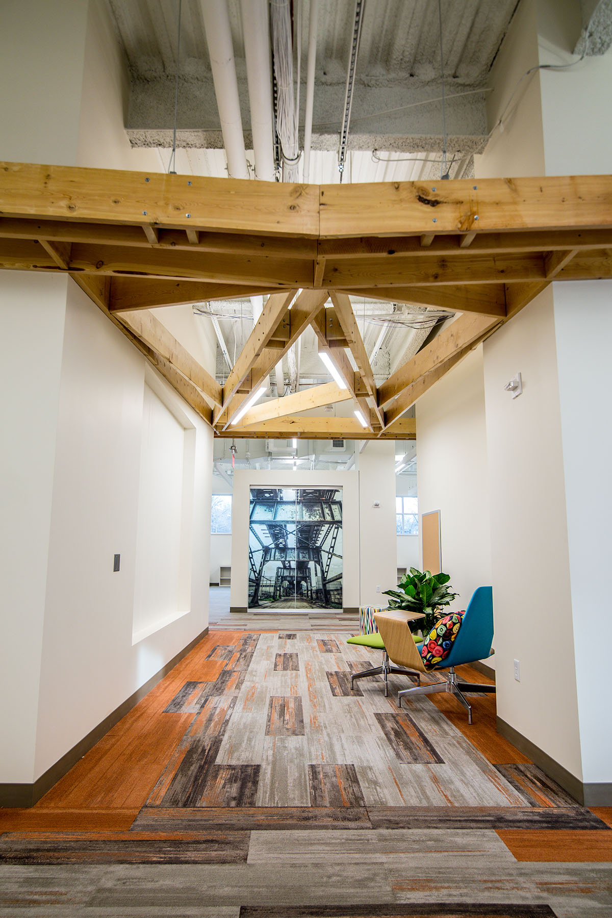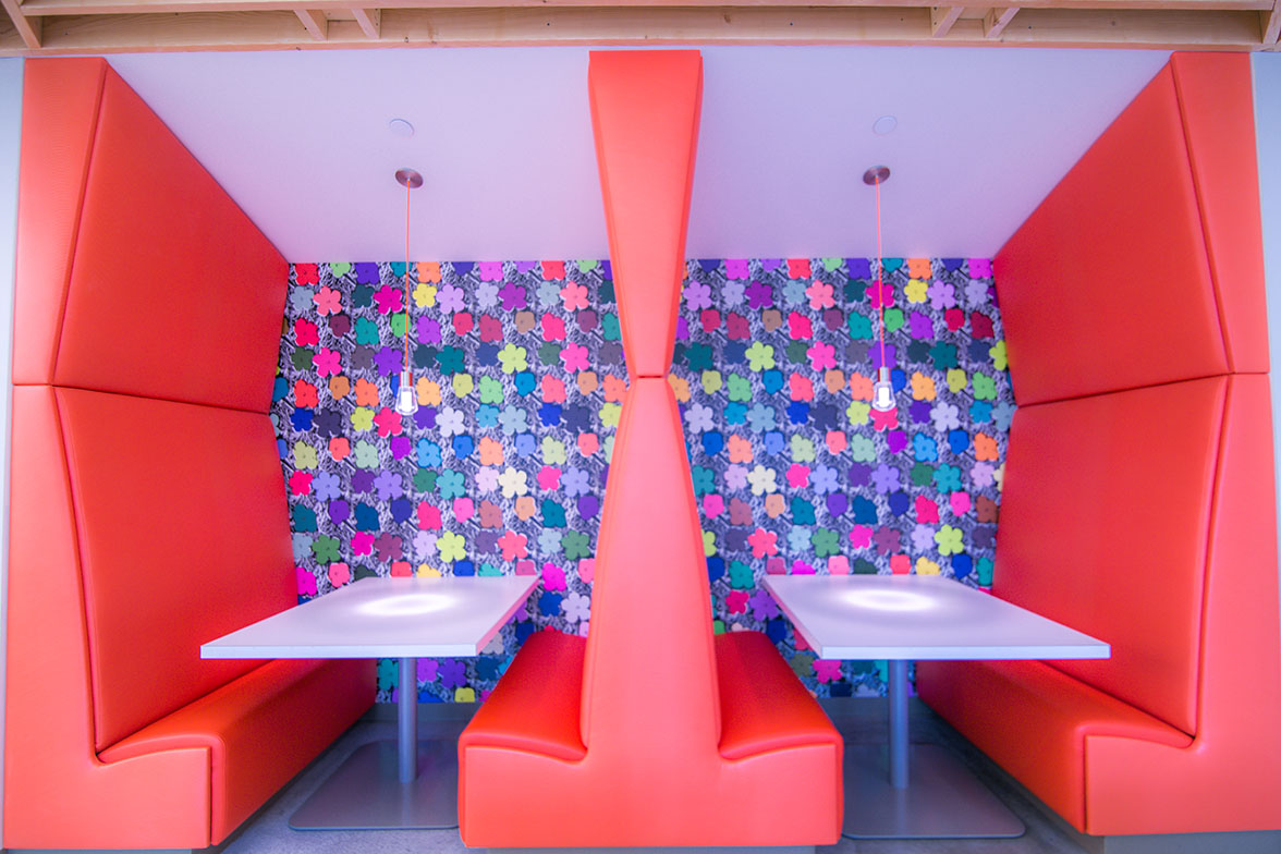 Autodesk, along with their Owners Representative, Jones Lang LaSalle, selected A. Martini & Co.’s team to build their 14,000sf space at Bakery Square 2.0. The goal and theme of the space was to build a fun atmosphere while incorporating the feel of Pittsburgh – metal, wood, as well as unique prints to reflect the famous artists from the area, and large pieces of artwork of landmarks around the Pittsburgh region. Working with NEXT architecture, our team achieved this goals by focusing on the unique craftsmanship of the space and the intricate touches in each area of the office. The office’s location in the new 2.0 building offers a ton of natural light, which really helps to highlight the industrial finishes and bold colors in the space.