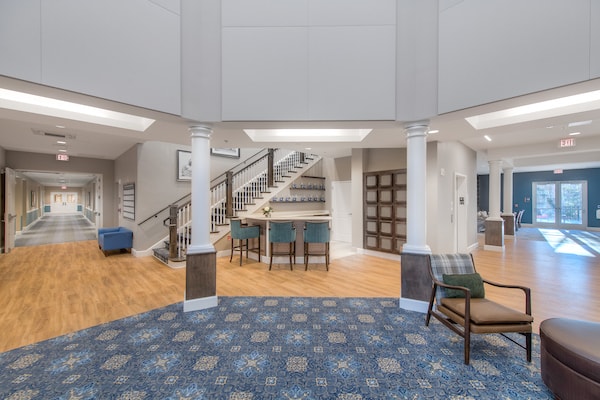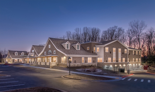 A. Martini & Co. served as the General Contractor for 114,000sf two-story, wood-framed building, with an underground parking garage. This assisted living facility, located in Annapolis, MD has 88 private residences, multiple dining areas including a demonstration kitchen, large fitness center, a bar, theater, art studio, and a full-service salon. In one wing of this facility is a memory-care unit with 32 private rooms and also a kitchen and dining area. There is a veranda with outdoor views and a two-story atrium featuring aesthetics reflecting the neighboring Naval Academy. Our team began with a large amount of site work including retrofitting existing bio-retention ponds to fit the building footprint, excavation and installation of an underground storm water management tank, five courtyards, and multiple new bio-retention ponds and rain gardens on this three-acre site.