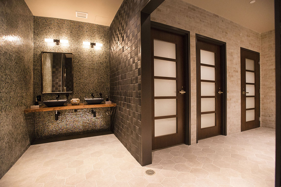This exotic space also has an outdoor covered patio with full-service drink station, nine televisions and a big screen for game day.