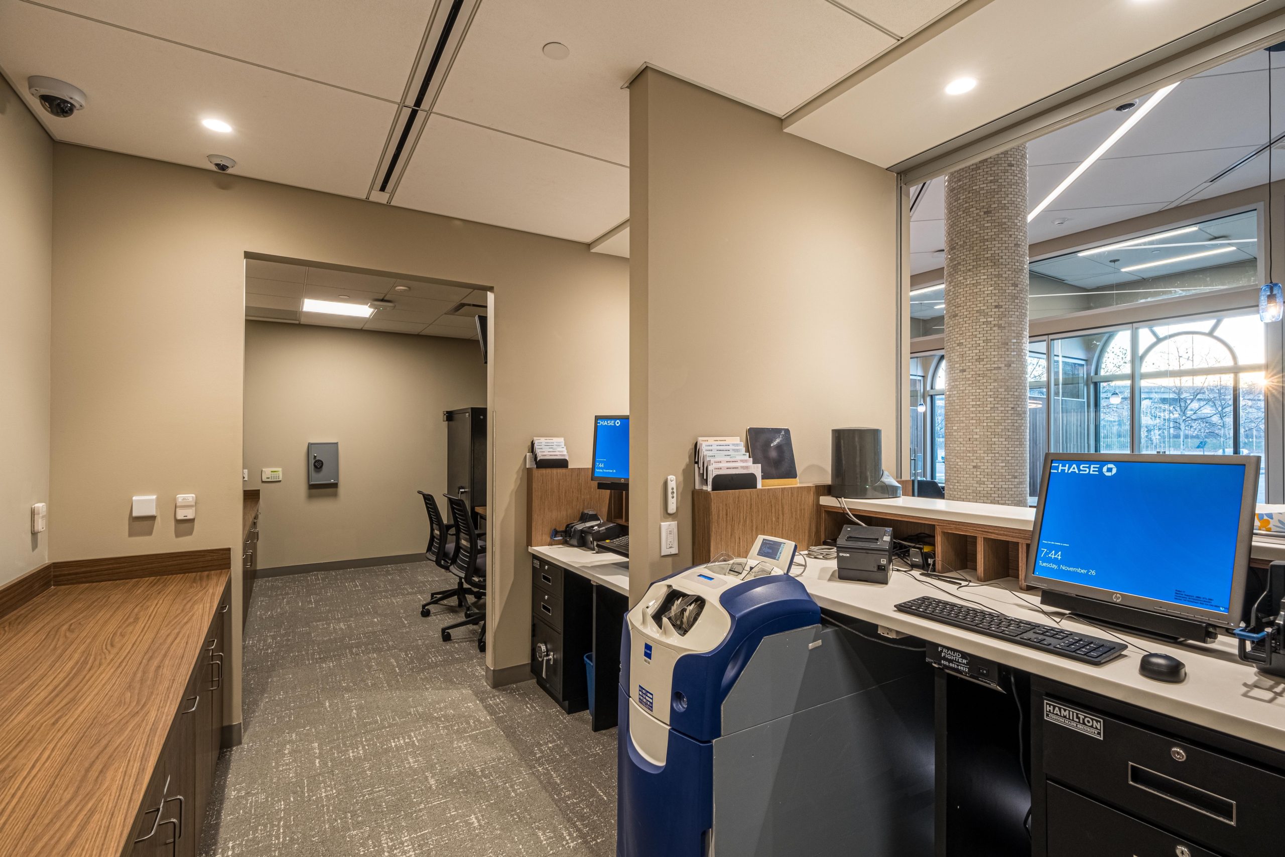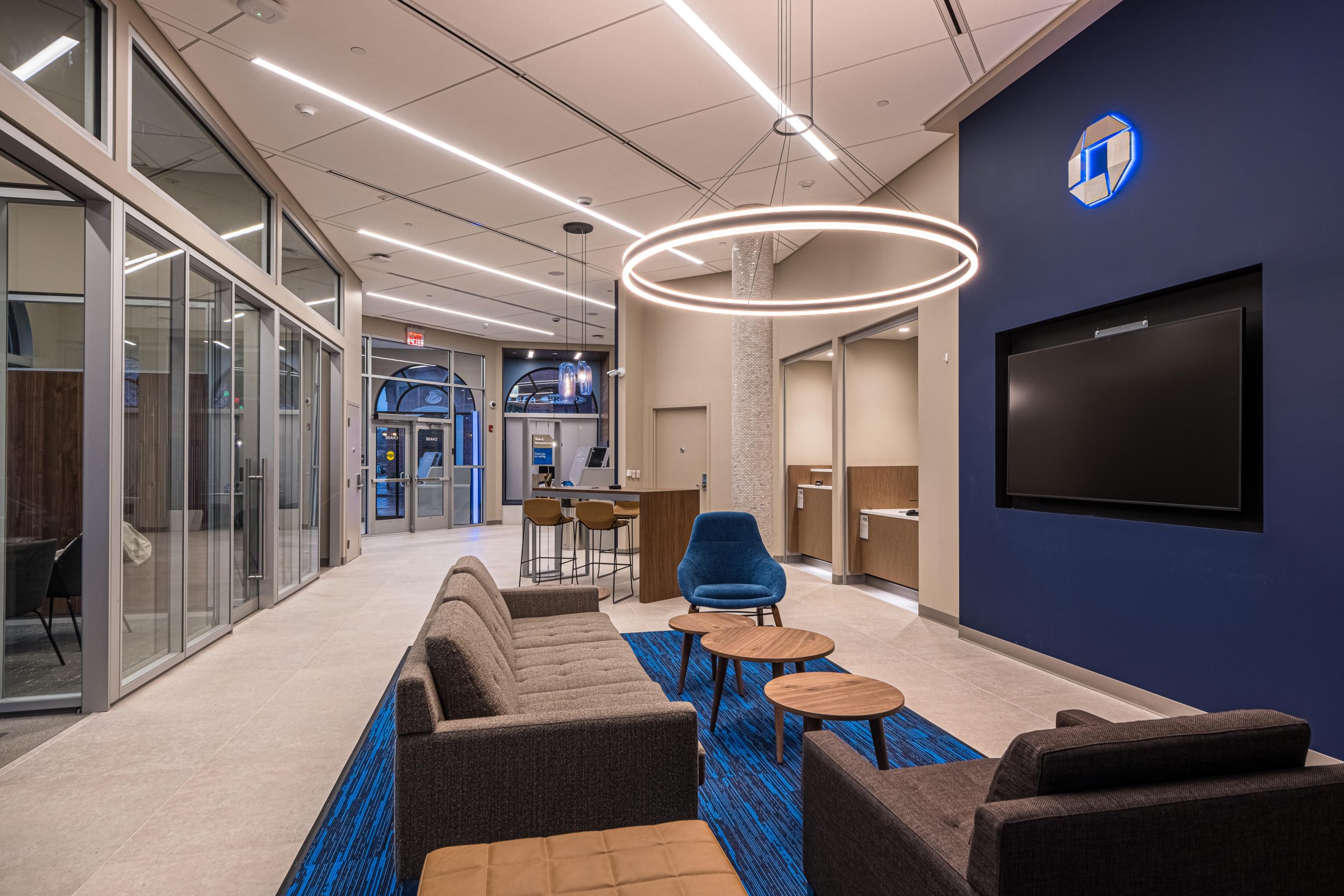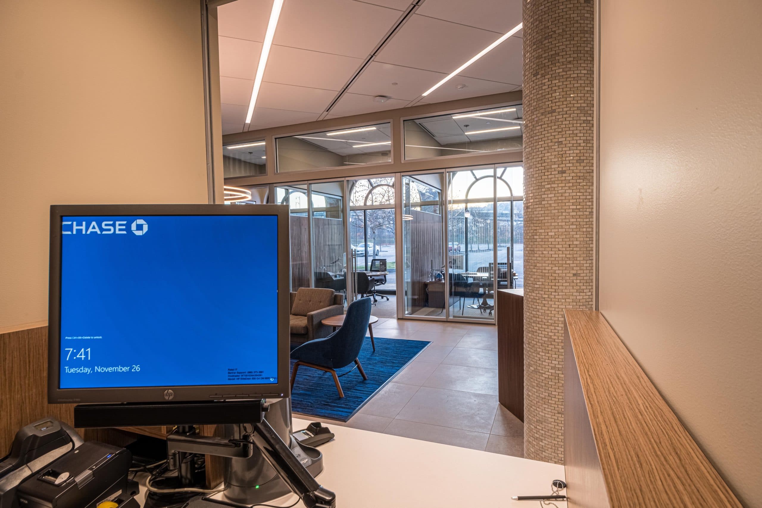 Our team coordinated with JPMC vendors, the Owner’s Representative – JLL and the architect, David Allen Youst, to complete the branch on a 16-week schedule.