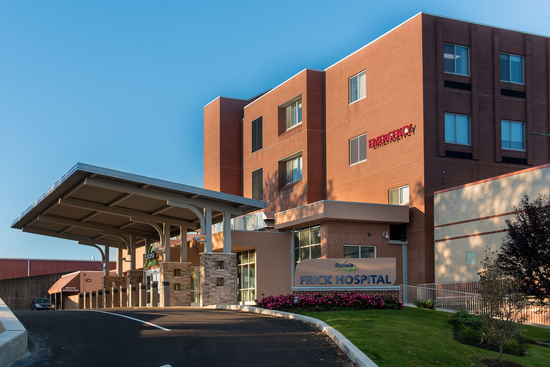 A. Martini & Co. served as the General Contractor for the four-phase expansion and renovation of Frick Hospital’s Emergency Department (ED). The existing ambulance bay and entrance to the ED was relocated and a temporary canopy constructed. One of the very first steps was to create an alternate route for flow of pedestrian and vehicular traffic to access the ED. The construction expanded the ED into the previously existing ambulance bay areas, pushing the entrance of the hospital outward. The scope of work included renovation of the existing ED areas – registration, patient rooms, waiting rooms, EMS lounge, locker rooms and data room. A challenge throughout the project was maintaining temporary triage, patient care and administration areas operational while remodeling.