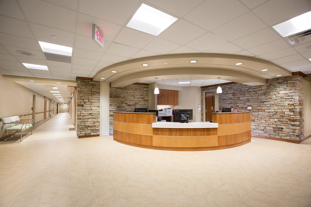 A. Martini & Co. served as the General Contractor for the four-phase renovation of various departments on the first and third floors of Frick Hospital. Phase One included a full makeover of the Cardiology department on the third floor. This was a Level 4 ICRA contained space that involved a great deal of coordination with the hospital to relocate the staff initially and get them back in on a non-negotiable predetermined end date. The aggressive schedule included entire demolition of the space and fireproofing of the whole ceiling and its structural members. The fit out provided a new staff lounge, reception areas, exam rooms and offices. Throughout the entire project, A. Martini & Co. worked closely with the end user groups/departments to incorporate all of their changing needs. Due to neighboring departments that were in operation 24-7, a great deal of coordination and communication was required to avoid disruption to those areas of the hospital. Our team also had to coordinate daily with a number of user groups/departments outside of the construction space due to the required routing to get from the loading dock into the construction space. This path through the hospital made it imperative that A. Martini & Co. and its subcontractors paid the utmost attention to ICRA and general patient traffic flow for the duration of the phase.