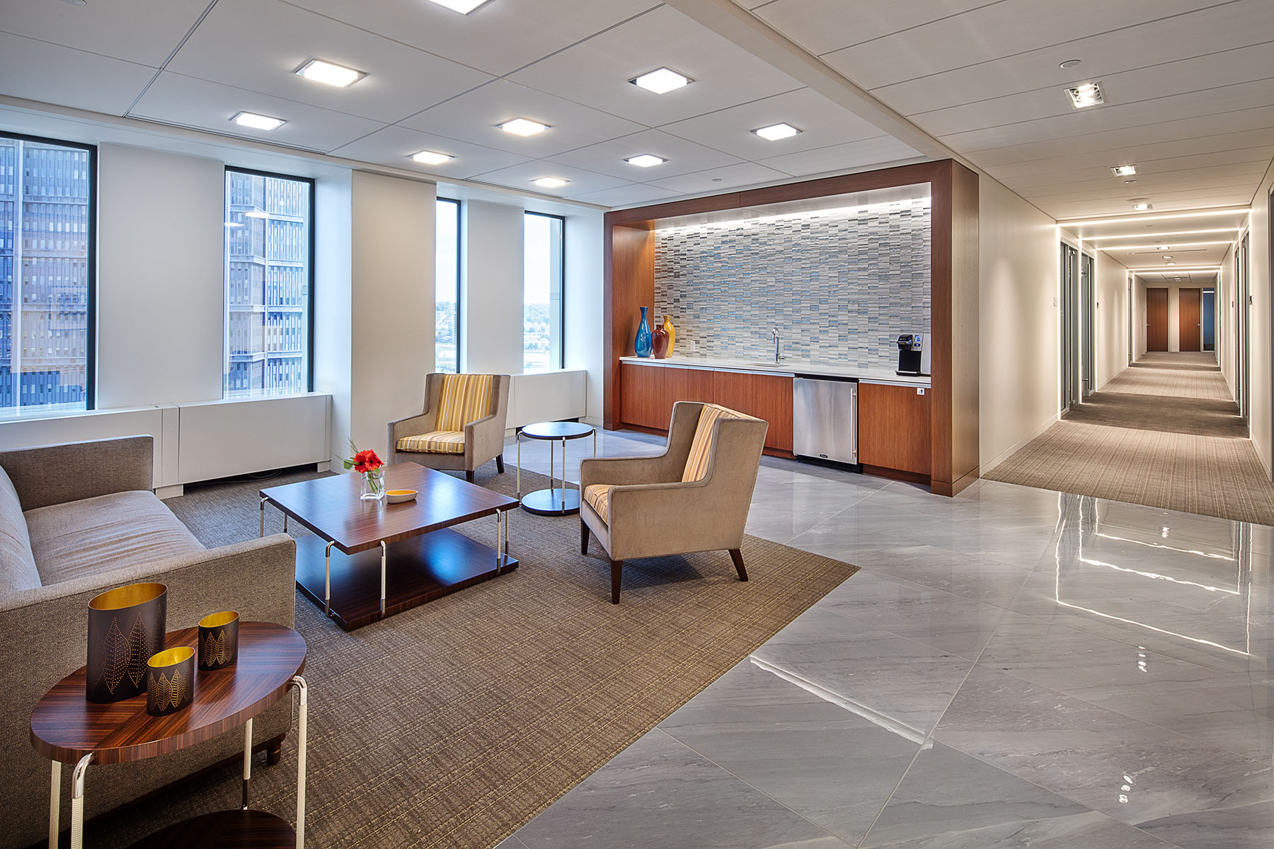 Fox Rothschild LLP is a national law firm with more than 600 attorneys practicing in 21 offices coast to coast. A. Martini and Co. was selected as the Construction Management/General Contractor partner for the new construction of their corporate office space in downtown Pittsburgh on the 20th and 25th floors in BNY Mellon Center. Within the space, there are multiple high-end conference rooms, glass front offices, reception area, gathering spaces, kitchens and restrooms. Additionally our team had to install extra steel supports for the condensed filing system used by the firm.