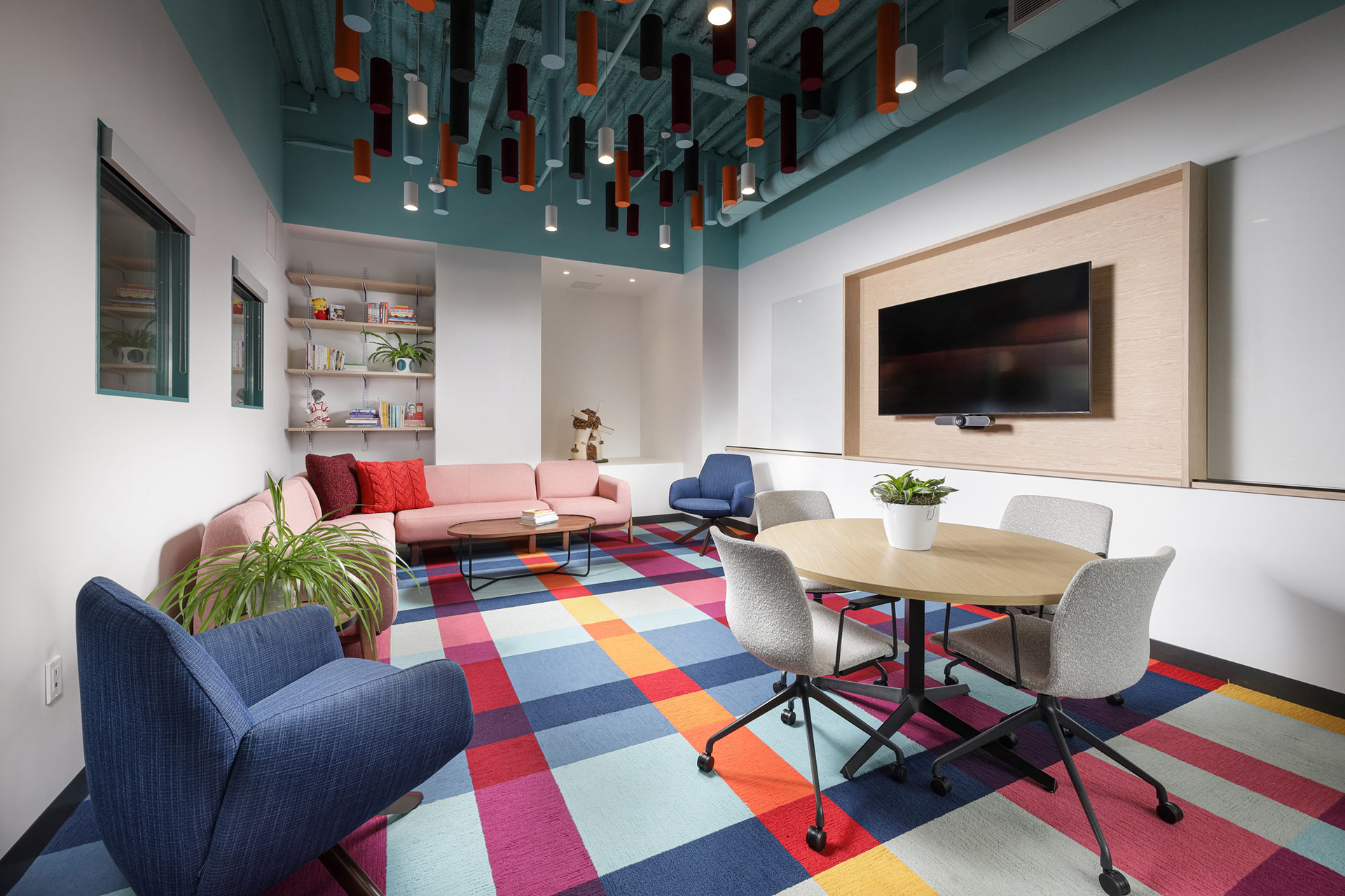 Pittsburgh’s own Fred Rogers Productions (FRP) relocated to the Southside Works. The new 11,000sf office environment takes its inspiration from FRP’s multiple hit series and features elements that honor the look and feel of an actual neighborhood. There is also a private terrace for meetings and dining. The light-filled space was designed to strike a perfect balance between practical and whimsy.