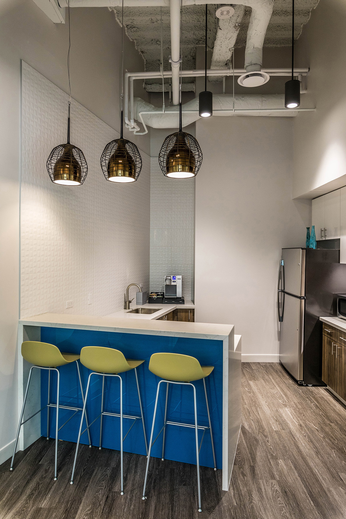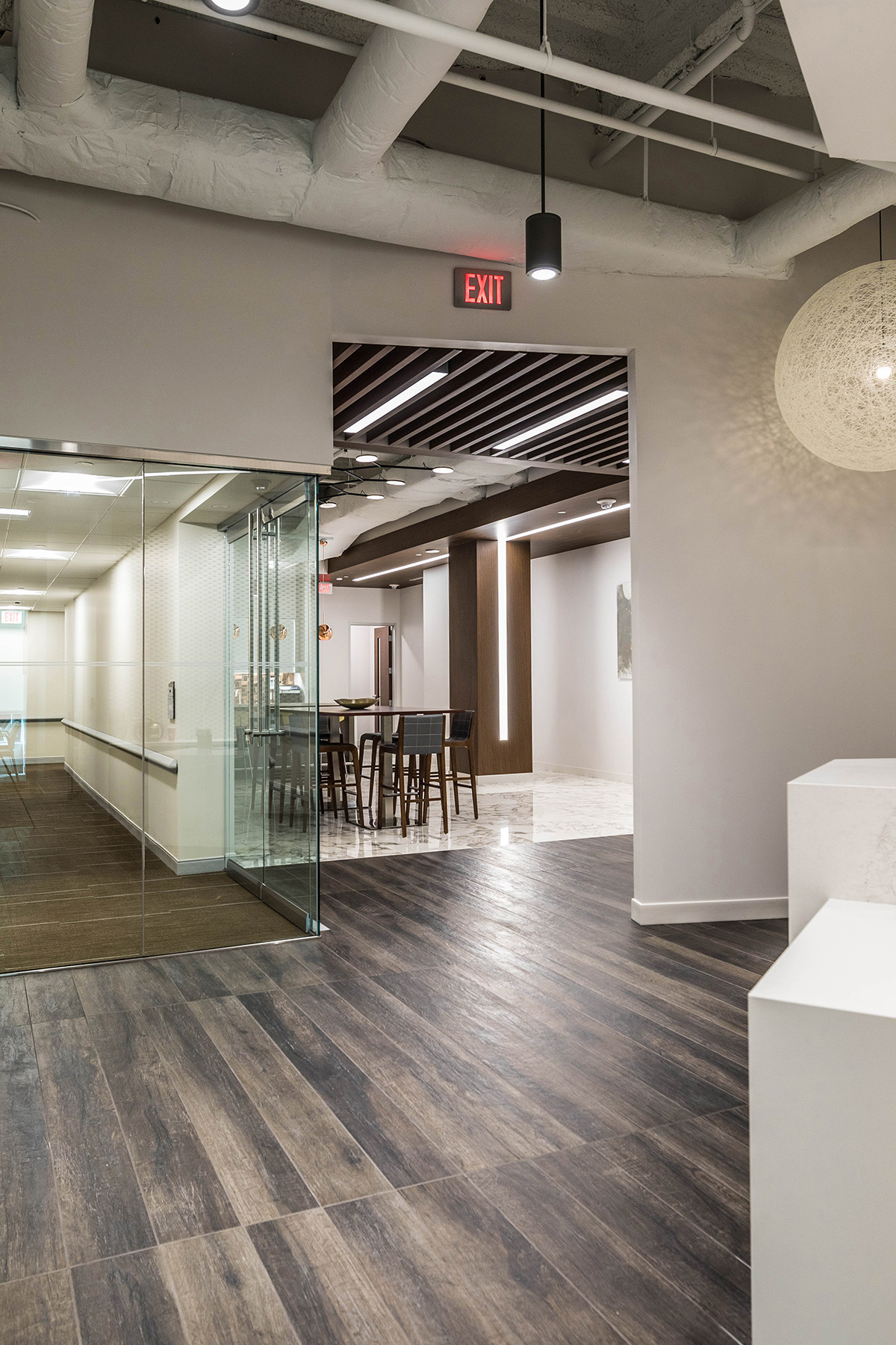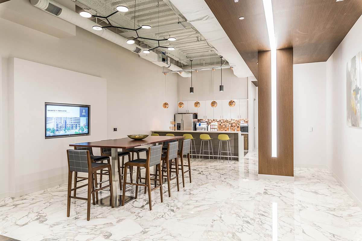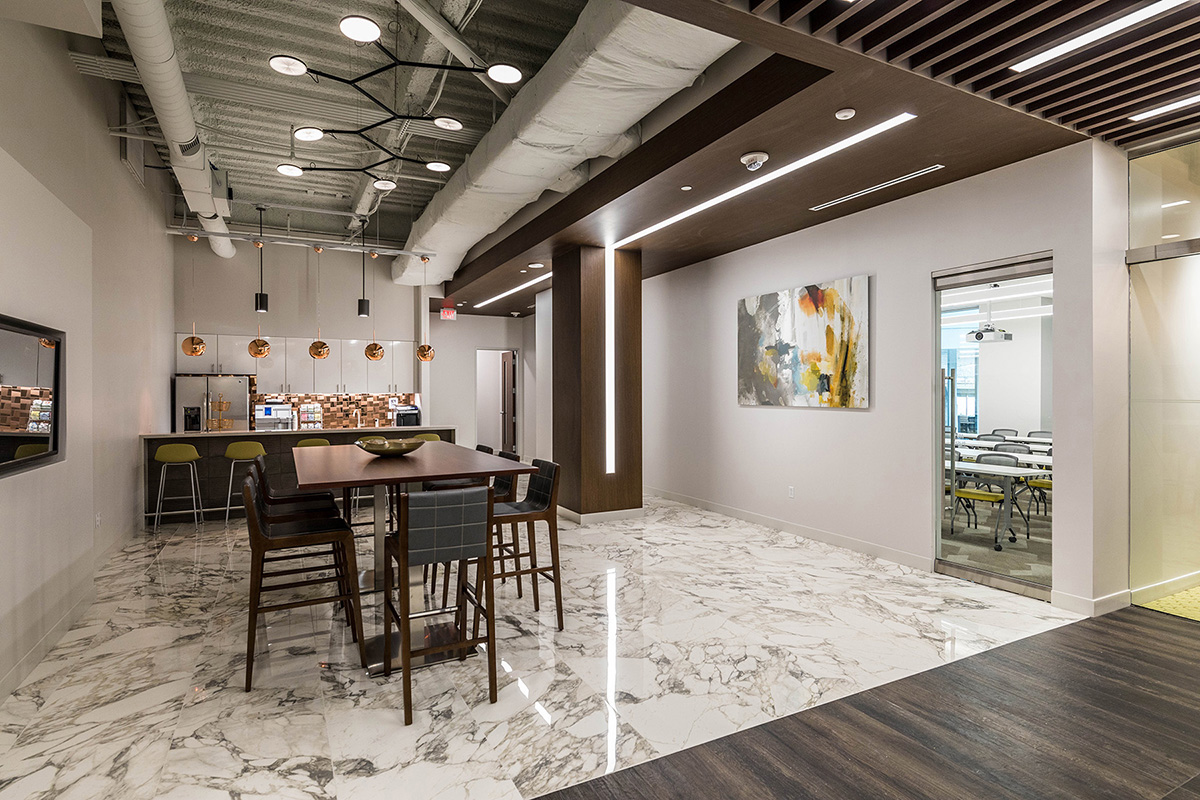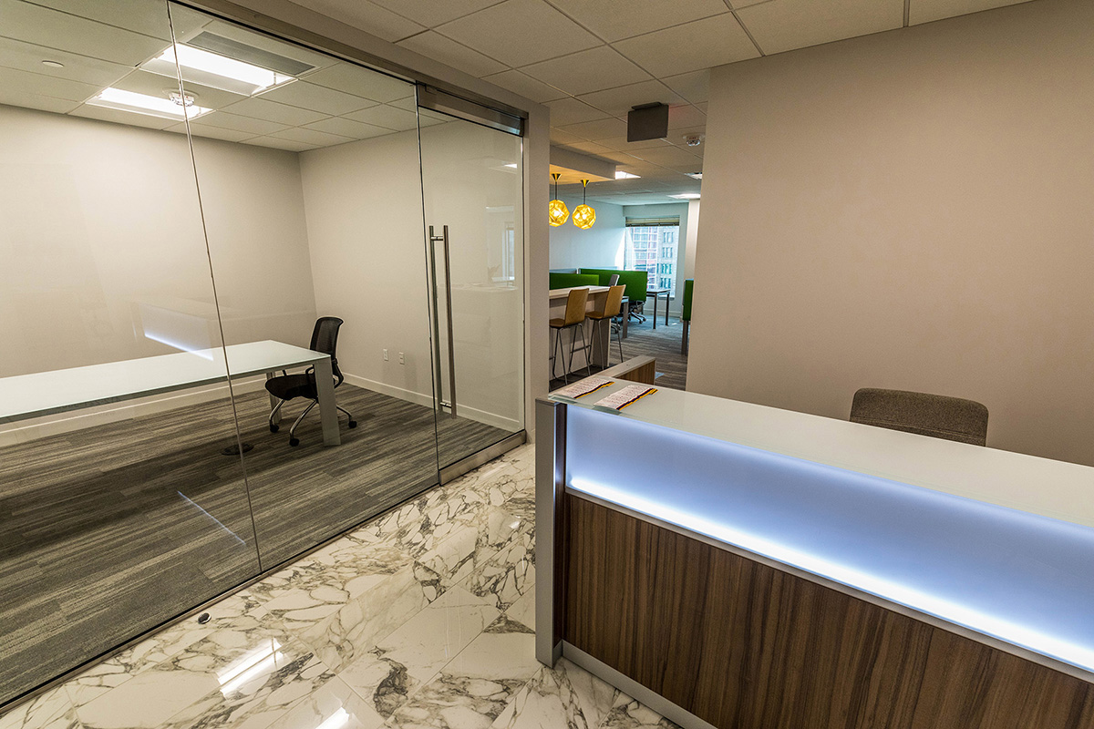 A. Martini & Co. completed a tenant fit-out for 5-Star Service Worldwide, a nationwide workplace concept by CBRE Global Investors. This office space entailed a reception area, four private office spaces, a small kitchenette, a private board room, large conference/training room with ability to divide into two spaces, and an open dining/kitchen space for guests. The entire space has high-end finishes and is available for any tenant to use in Liberty Center. In addition, our team built out a small spec-suite on the seventh floor to use as a show space for future tenants, as well as new tenants looking to choose finishes and space layouts.