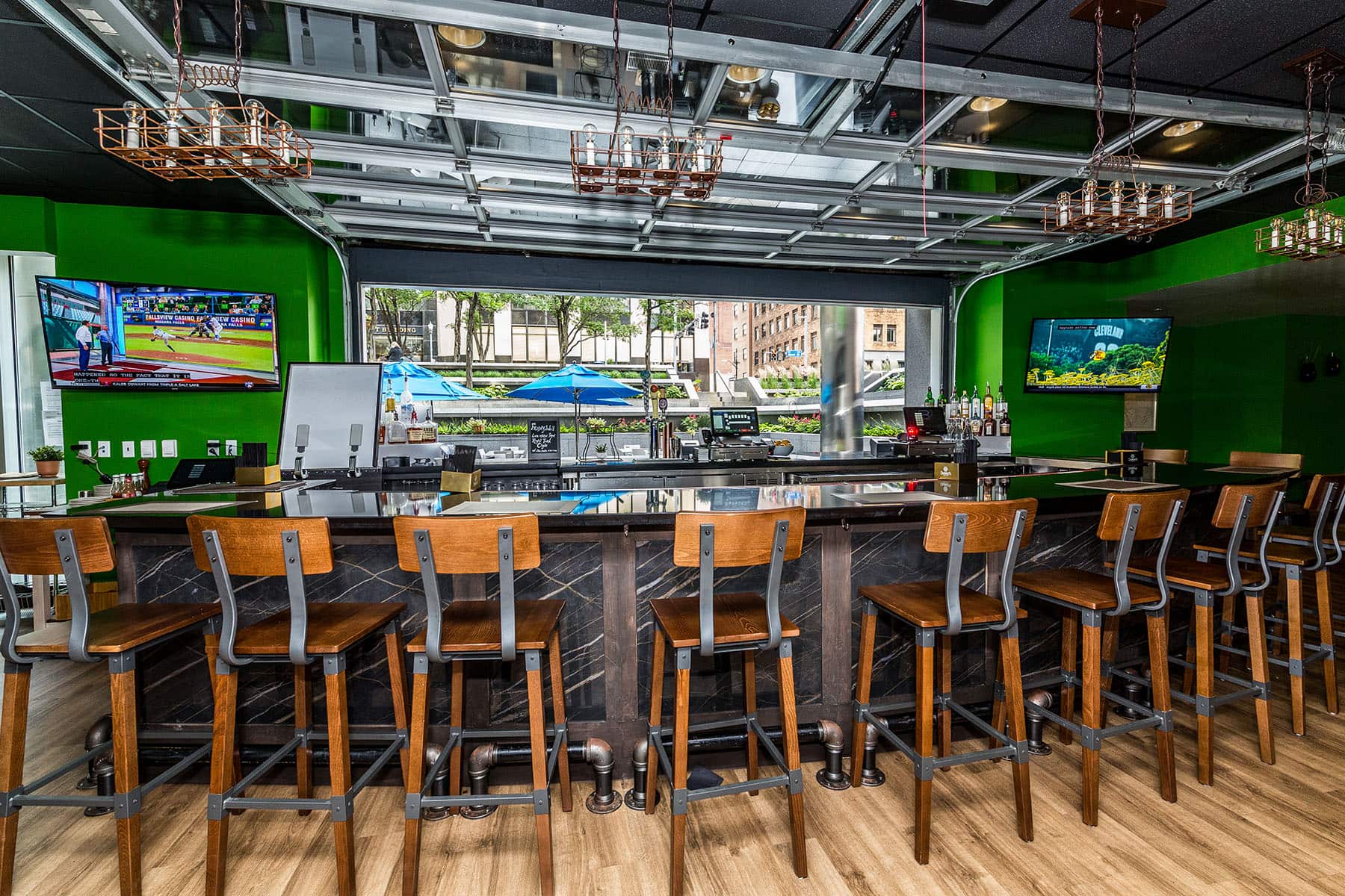 In addition to the Market, Bar Oxford is located on the opposite side of the kitchen area, featuring garage-style doors that open to a terrace one fronting Grant Street.