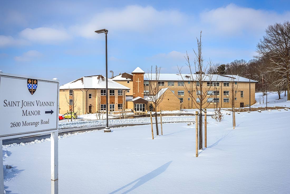 A. Martini & Co. served as the General Contractor for St. John Vianney Manor retirement home on the campus of St. Paul Seminary in Crafton. This is the first renovation/expansion to the facility, since the third floor was added over 37 years ago. Construction included four residential suites, for a total of 35 in the home. A new, two story structure, connecting the existing building, which now houses the dining room, kitchen, two lounges, an exercise facility and nurse’s office. Suites were refurbished with walk-in showers, new windows, flooring and paint. The temperature of every suite can be controlled individually, thanks to an updated HVAC system. Additionally a new elevator was added to the facility.