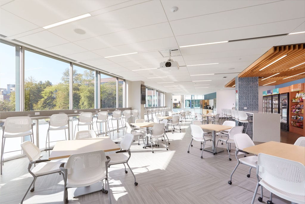 The entire office is fully technology-enabled and also includes an on-site fitness center and locker rooms. A. Martini & Co. coordinated with client selected vendors for the IT portion of the project.